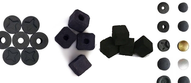 The shisha hookah charcoal briquettes plant is a complete production line to making charcoal tablets for hookah or shisha smoking fuel, which most popular shapes are cube briquettes and round tablets. And for cube shape shisha charcoal briquettes, the most popular size is 25x25x25mm; besides, some clients like 22x22x22mm, or 27x27x27mm. Regards to round hookah charcoal tablets, in the markets, there are several dimensions are for option, like 30mm, 33mm, 35mm,38mm, 40mm in diameter. Currently, there are some people interesting in pressing charcoal briquettes in hexagonal shape, biscuits, donuts, skeletons, etc. In general, people prefer to customizing shisha hookah charcoal briquettes shapes and dimensions.