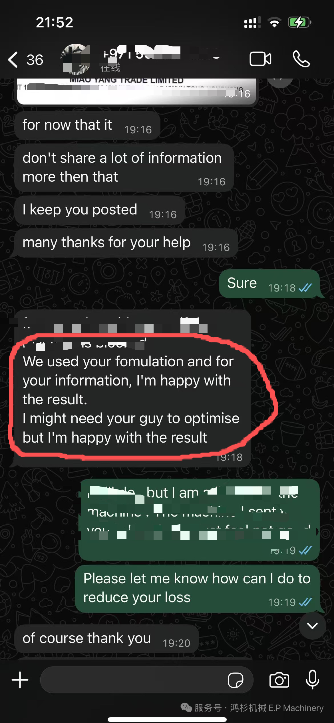 Client Testimonial: "The EP team provided not just machines and a formula, but problem-solving capability and reliable support. That's what gives us confidence."